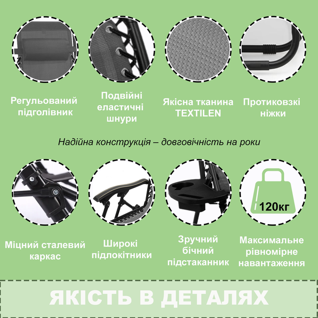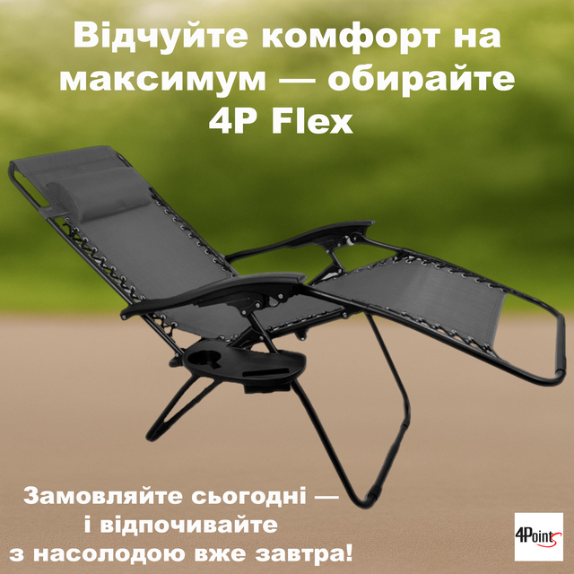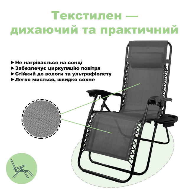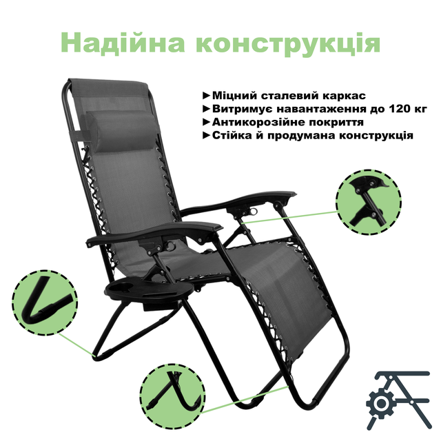 | Призначення | Шезлонг 4P Zero Gravity крісло розкладне садове лежак складаний пляжний з підсклянником для відпочинку дому дачі саду басейну пляжу Сірий |